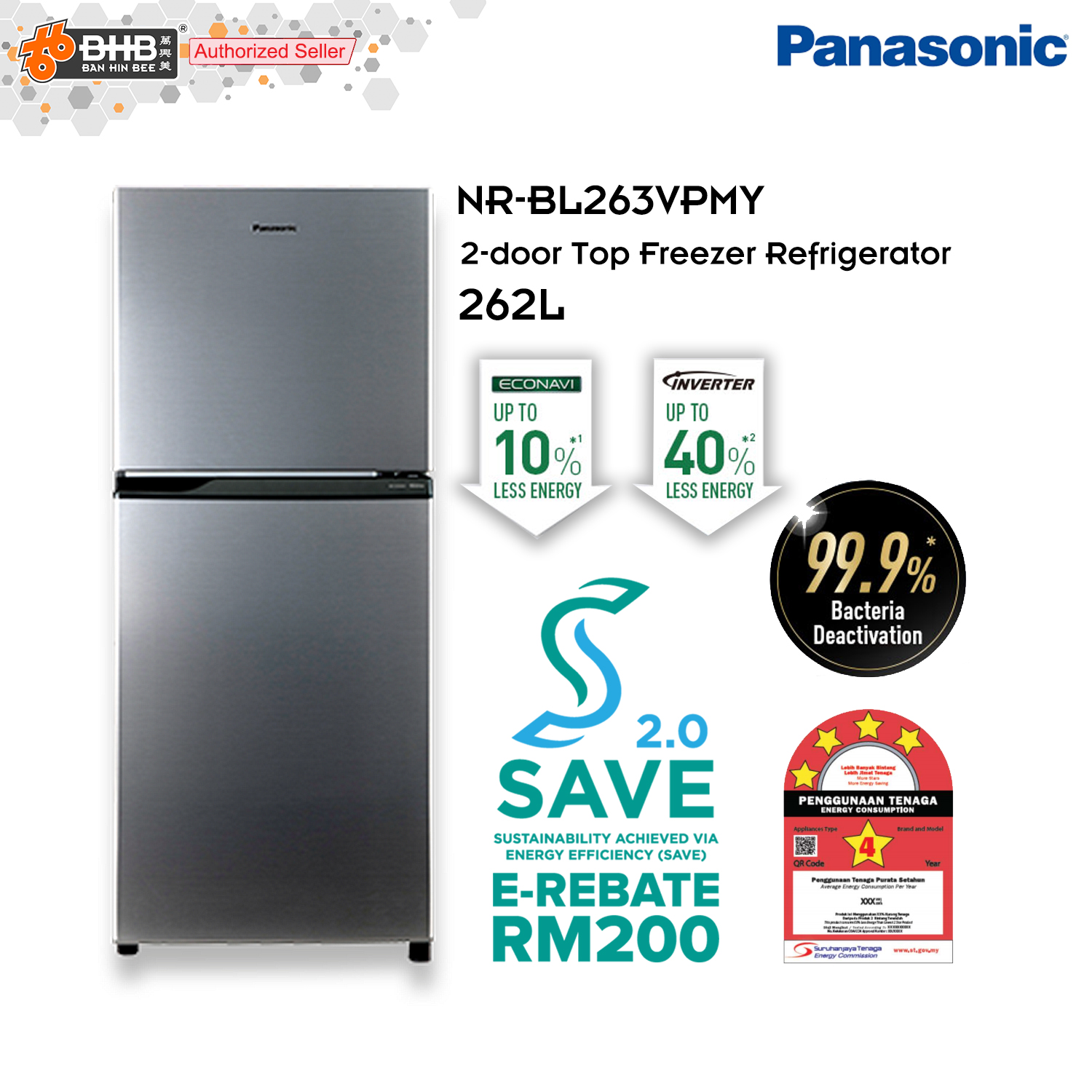 2021 Panasonic 234l 2 Door Econavi Inverter Refrigerator Nr Bl263vpmy Nr Bl263vp Fridge Peti Sejuk Peti Ais 电冰箱 Shopee Malaysia